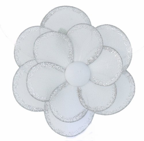 Bugs-n-Blooms specializes in nylon butterfly decorations, hanging dragonflies, ladybug decor, bumble bees and daisy flower decor for your little girls nursery or bedroom. Our butterflies are designed to coordinate with any bedding to create a stunning garden themed room using our dragonfly, ladybugs, bumble bees and daisy flower decor. Our elegant nylon accessories are perfect to hang from the ceiling and/or attach to the walls. All of Bugs-n-Blooms decorations are made with a soft bendable wire frame and nylon fabric; which are nicely accented with sequins, glitter, and/or beads. Our stunning daisy flower decorations can also add a special touch to a flower nursery, girls daisy birthday party, baby shower, or a corporate event. Our flower decorations come in a variety of styles, colors and sizes. Our decorative designs are perfect for any room in the house; making a home cheerful & colorful. See detailed product information above. For tips, visit our 'How To Hang' page in our Amazon store..../ 8" Medium White Glitter Layered Daisy Flower Decorations - daisies flowers hanging nylon nursery bedroom girls room ceiling wall decor, wedding birthday party baby bridal shower / Teens Bedroom